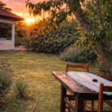 Na área externa, os hóspedes encontram um amplo espaço verde, perfeito para relaxar, aproveitar o ar livre e viver dias especiais em contato com a natureza.